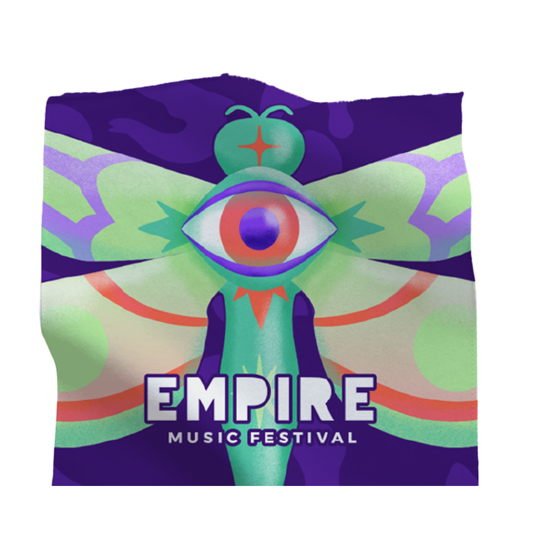 Pauñelo de sea con estampado de líbelula y logotipo Empire de 25" por 25".